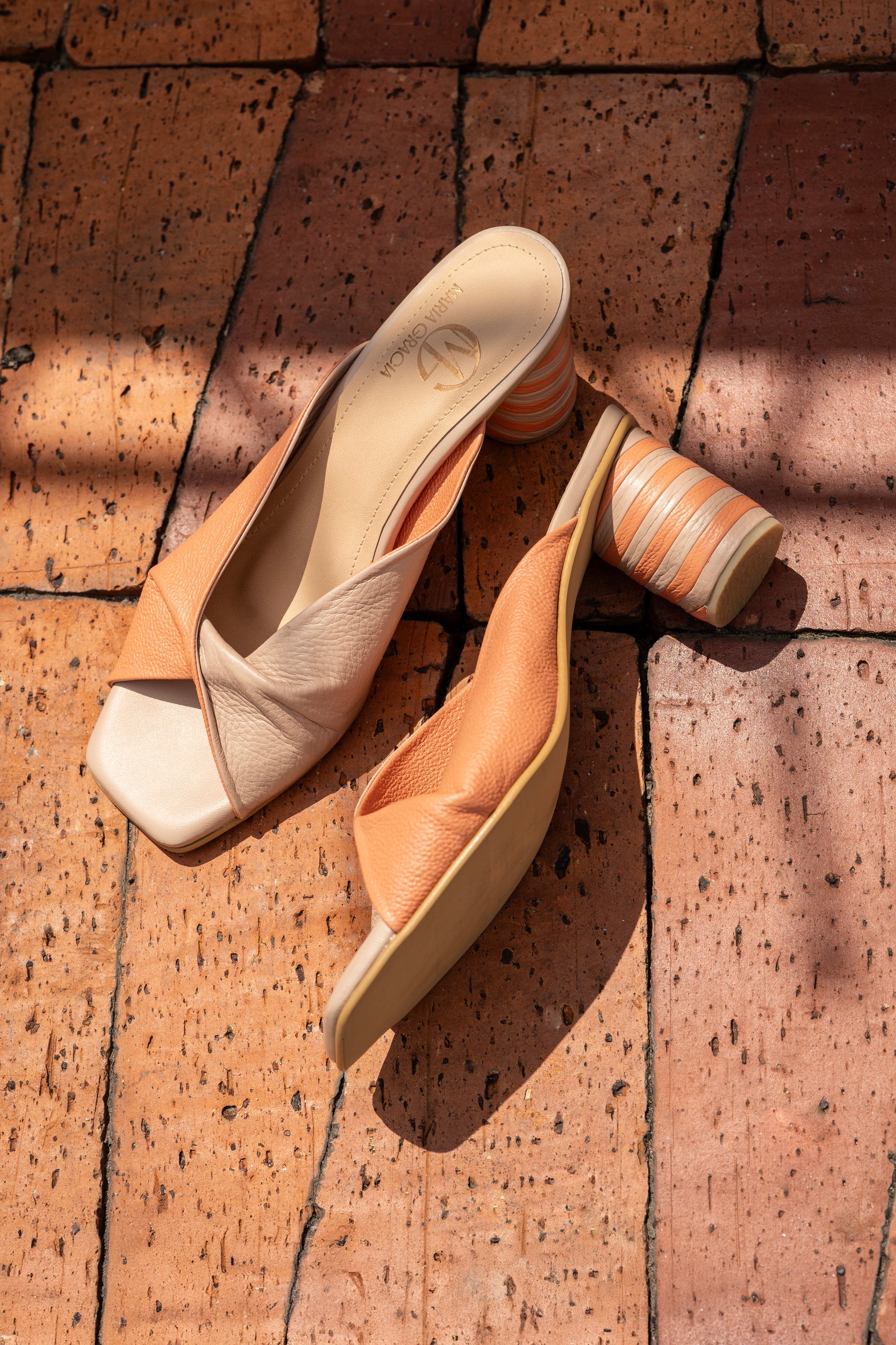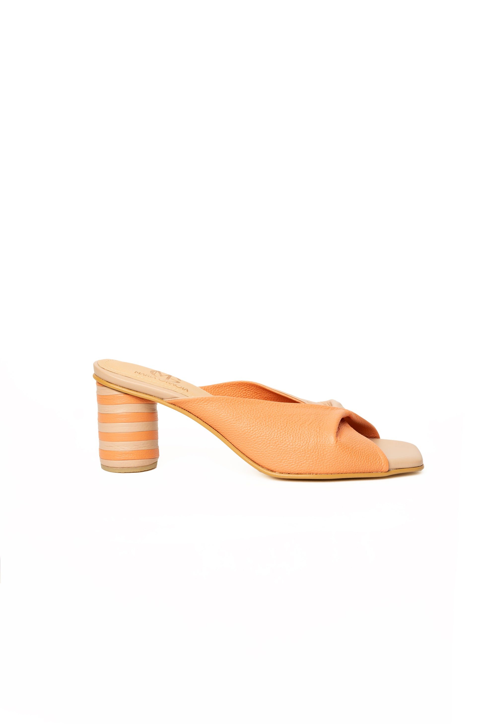 Sandalia de tacón tubular con detalle en cuero. Acabada en punta cuadrada.